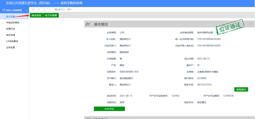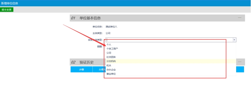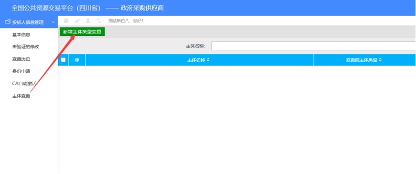 2、在變更頁面,選擇需要變更的主體類型,完成點擊左上角的“提交變更”,等省交易中心審核通過即可: