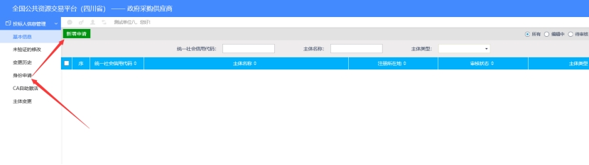 1、點擊身份申請頁面的“新增申請”按鈕:
