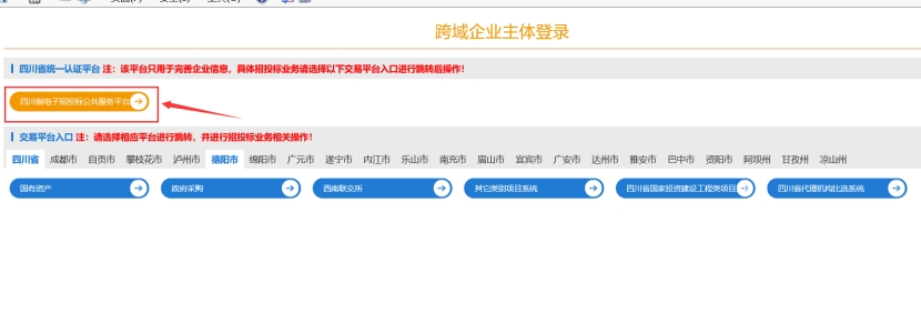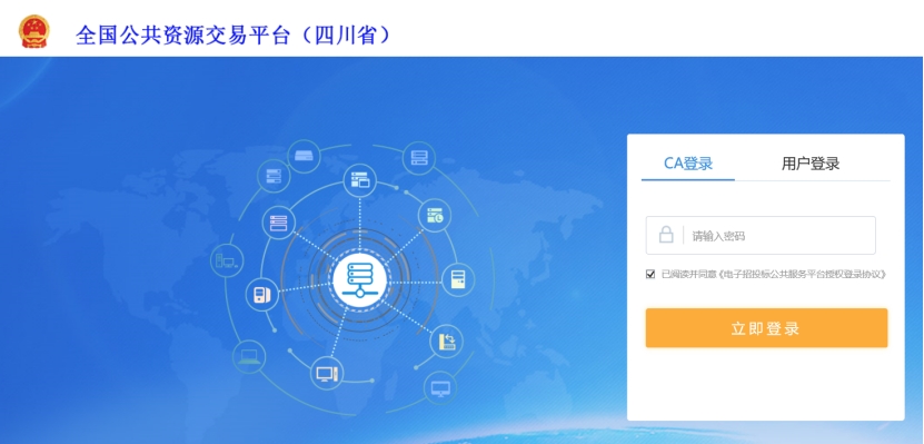 1、使用賬號密碼或CA登陸省統(tǒng)一認(rèn)證平臺,地址:http://ggzyjy.sc.gov.cn/PSPSSO/login/oauth2login