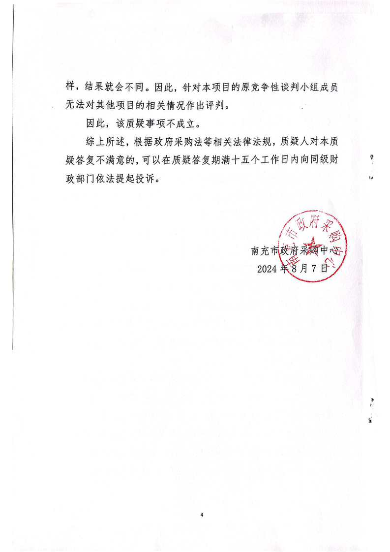 南充市政府采購中心關于四川省南充高級中學高坪校區(qū)物業(yè)服務項目采購的質(zhì)疑答復