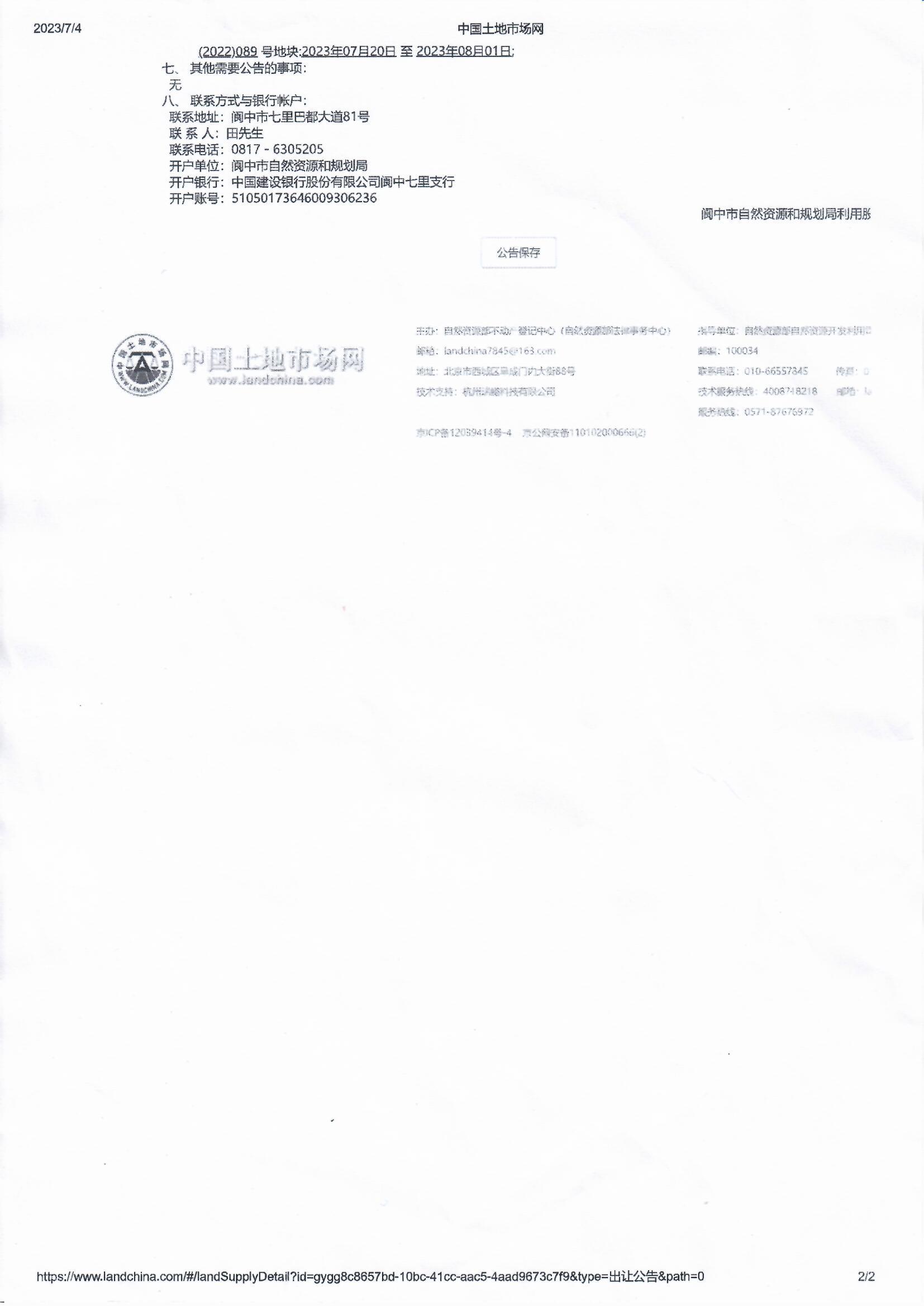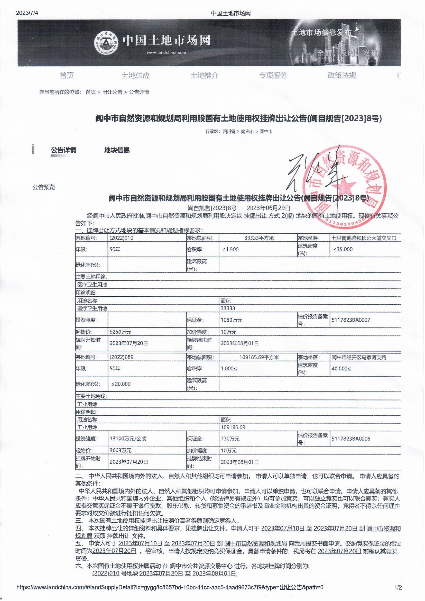 閬中市自然資源和規(guī)劃局利用股國有土地使用權(quán)掛牌出讓公告(閬?zhàn)砸?guī)告[2023]8號)