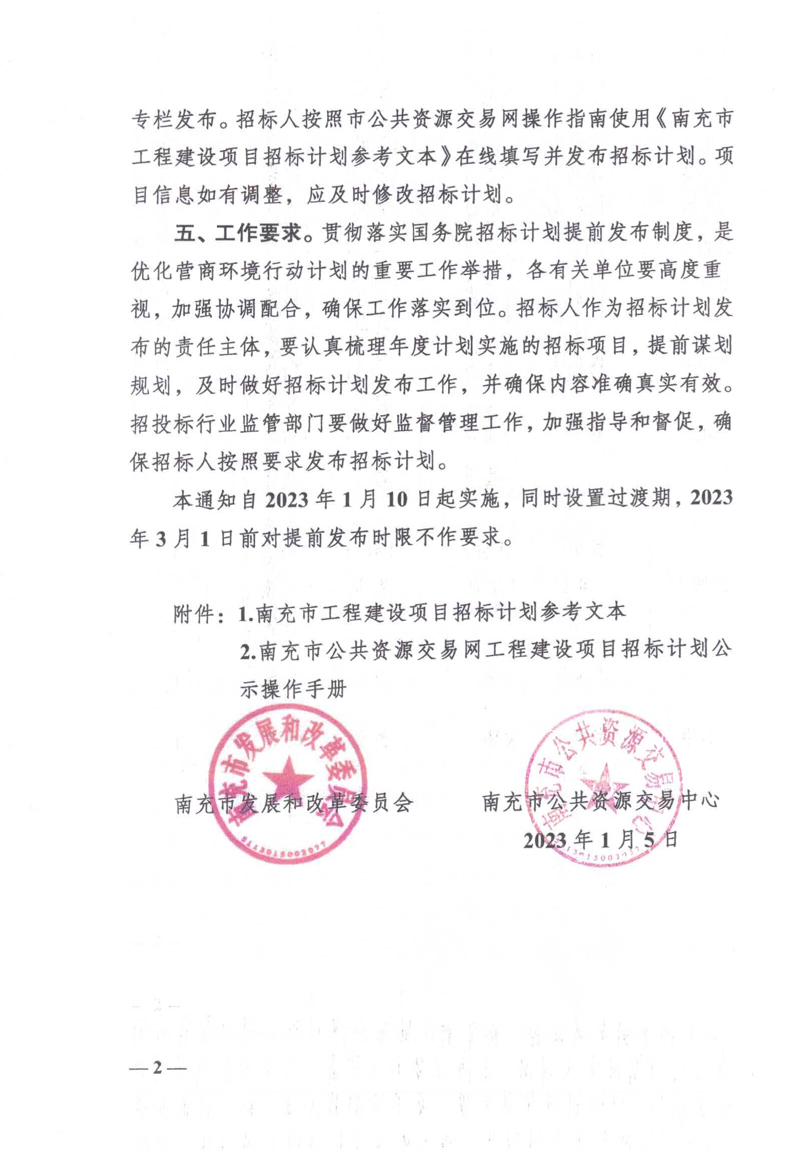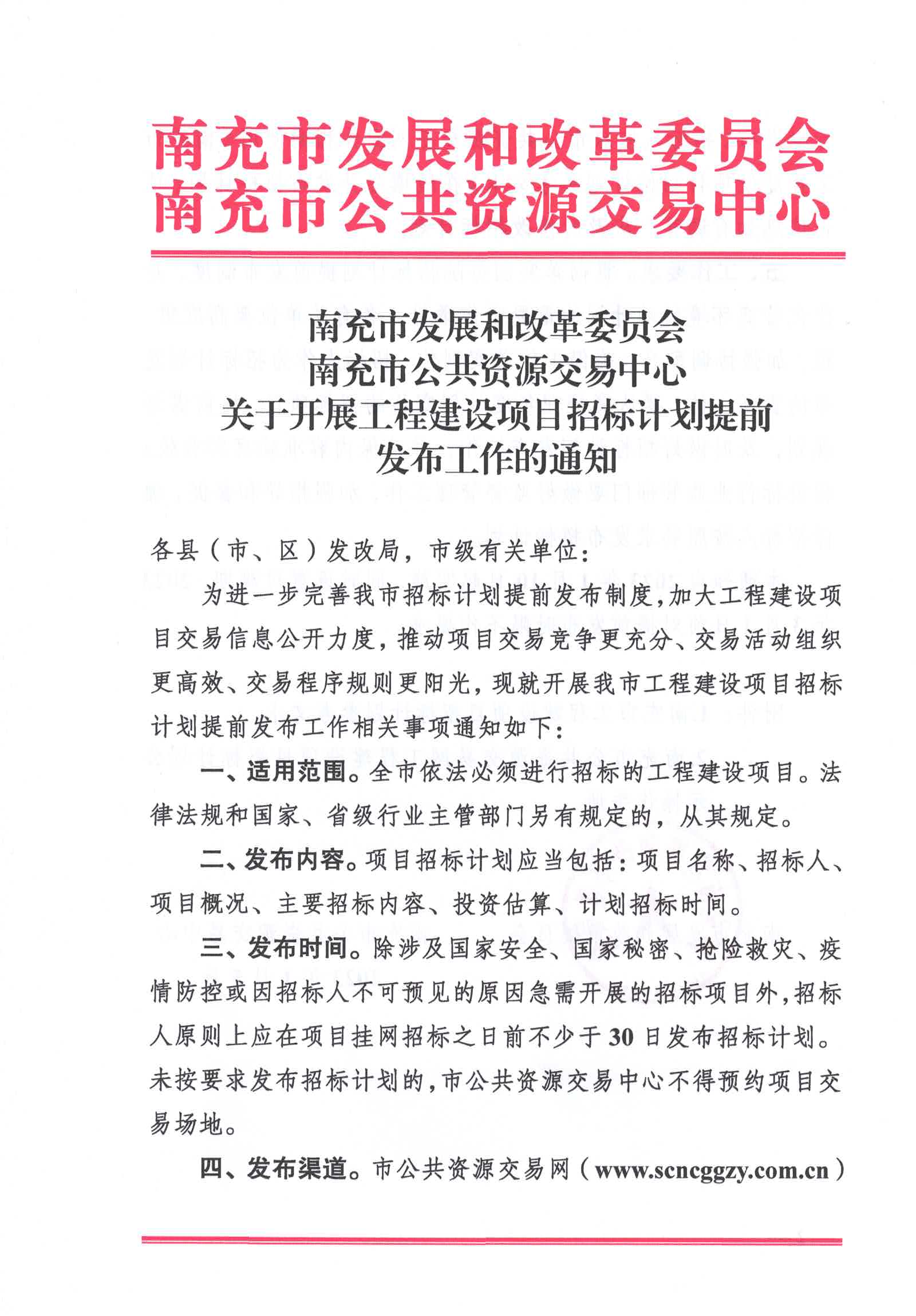 南充市發(fā)展和改革委員會、南充市公共資源交易中心關(guān)于開展工程建設(shè)項目招標計劃提前發(fā)布工作的通知
