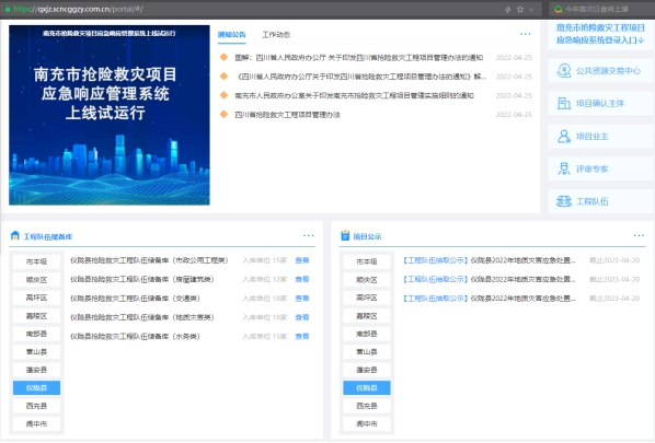 2023年4月20日,按照《儀隴縣搶險(xiǎn)救災(zāi)工程項(xiàng)目及工程隊(duì)伍儲(chǔ)備庫(kù)管理辦法》的相關(guān)規(guī)定,在儀隴縣應(yīng)急管理局、公共資源交易中心的組織見(jiàn)證和行業(yè)主管部門自規(guī)局的現(xiàn)場(chǎng)監(jiān)督下,儀隴縣公共資源交易中心采取隨機(jī)抽取方式從南充市搶險(xiǎn)救災(zāi)應(yīng)急響應(yīng)管理系統(tǒng)工程隊(duì)伍儲(chǔ)備庫(kù)中抽取出了儀隴縣地質(zhì)災(zāi)害應(yīng)急處置項(xiàng)目的施工、設(shè)計(jì)和監(jiān)理單位。抽取完成后系統(tǒng)自動(dòng)通過(guò)南充市搶險(xiǎn)救災(zāi)應(yīng)急響應(yīng)管理系統(tǒng)和南充市公共資源交易中心網(wǎng)站進(jìn)行了結(jié)果公示。