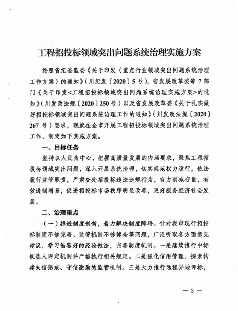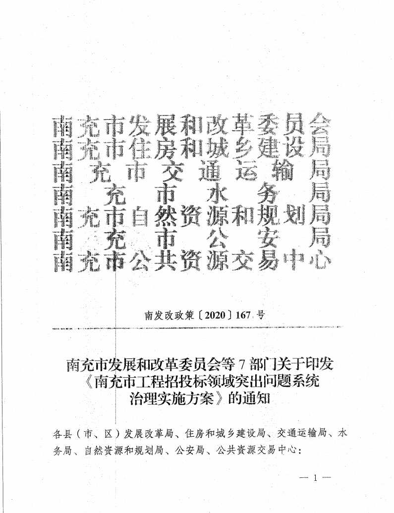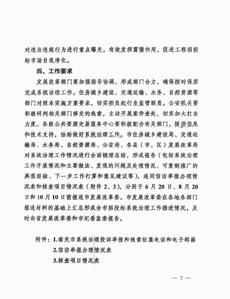 南充市發(fā)展和改革委員會等7部門關(guān)于印發(fā)《南充市工程招投標(biāo)領(lǐng)域突出問題系統(tǒng)治理實施方案》的通知
